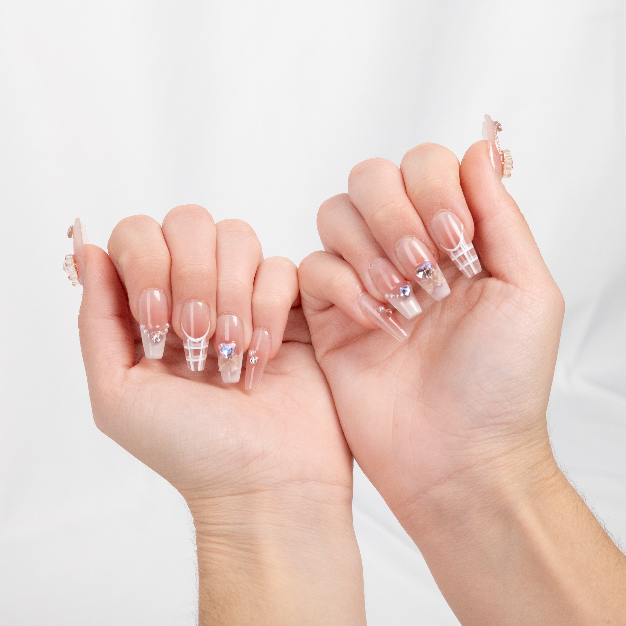 Divertidas uñas en rosa con osito 3D y corazones brillantes, llenas de ternura y encanto juvenil.