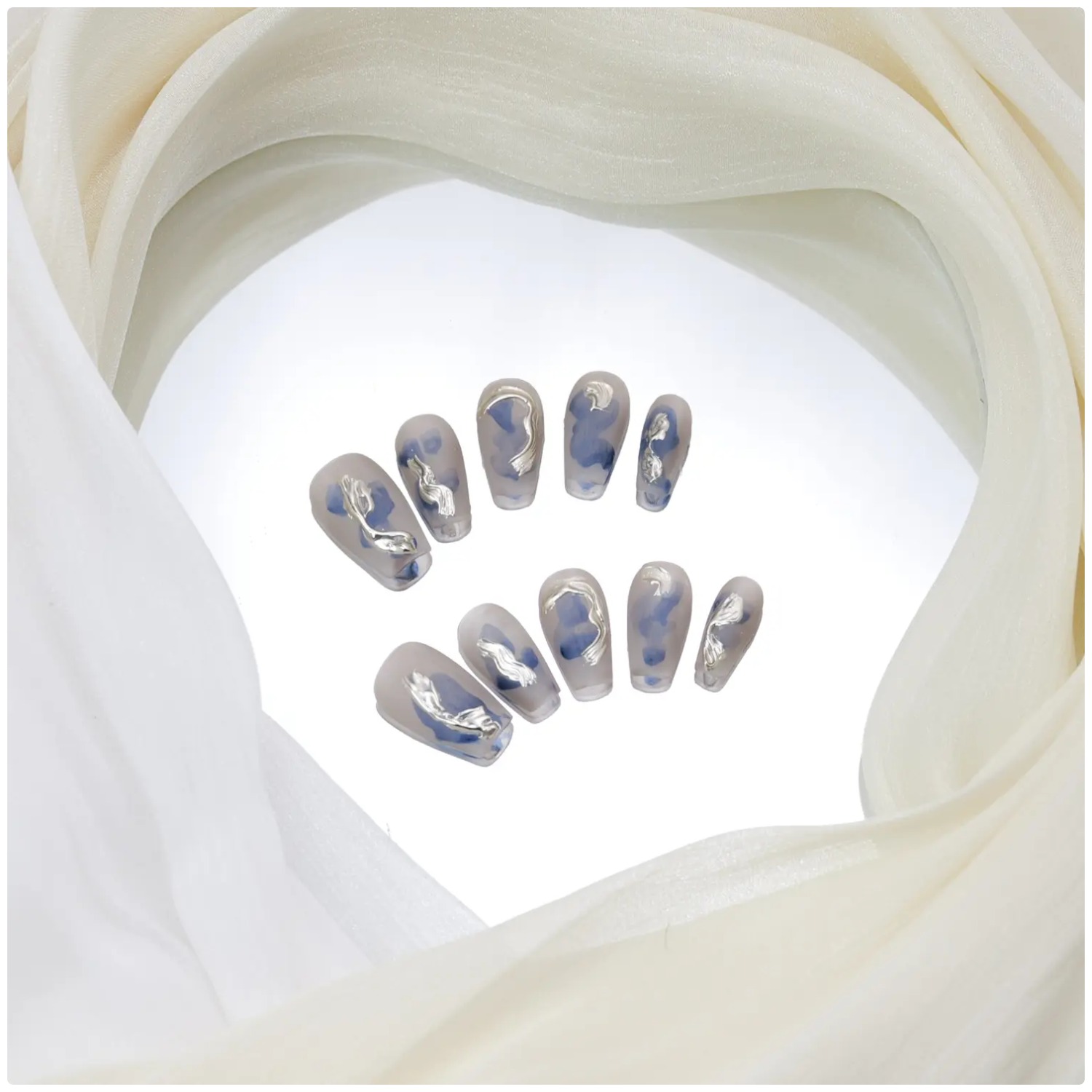 Diseño en tonos grises y azul marmolado con detalles metálicos en relieve que aportan un toque moderno y artístico.